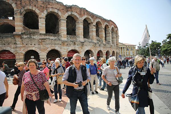Am nächsten Tag stand eine kurzweilige Stadtführung in Verona und der Besuch des Parco Sigurta auf dem Programm. Pünktlich machten wir uns auf den Weg mit unserem Bus, aus dem Gewitter über dem Gardasee, der Sonne entgegen nach Verona. Erika, unsere Stadtführerin, hat uns in Empfang genommen und uns zu den schönsten Sehenswürdigkeiten in einer 2-stündigen Tour, über die berühmte Arena di Verona
